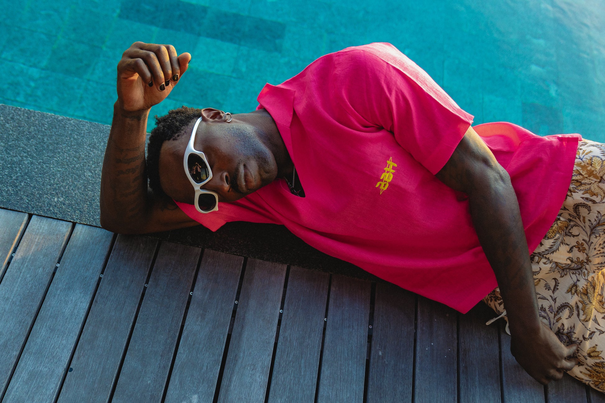 Loose-fit shirt made of natural linen in a vibrant pink shade — lightweight, comfortable, and stylish. Short sleeves and an open-front design create a relaxed look, while the contrasting front embroidery adds a striking accent and makes the piece truly memorable.