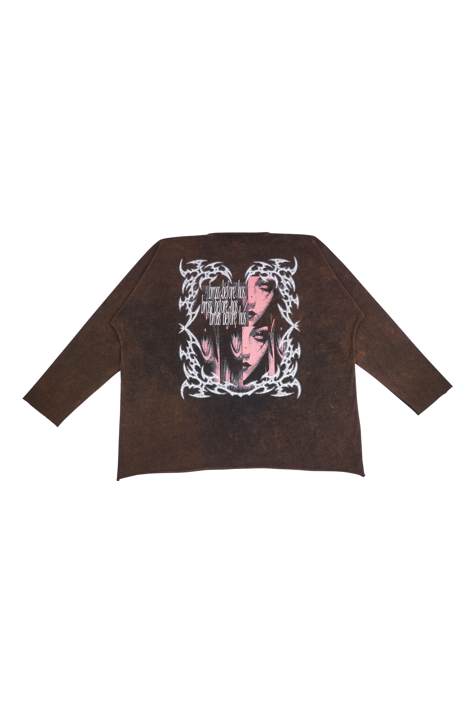 This long-sleeve top made from natural cotton is a versatile piece suitable for any season. The cut neckline adds character and highlights its unconventional design, while the expressive print makes the piece truly unique. Thanks to its thoughtful cut, it fits effortlessly into an everyday wardrobe while remaining a striking accent that brings individuality and style to any outfit.