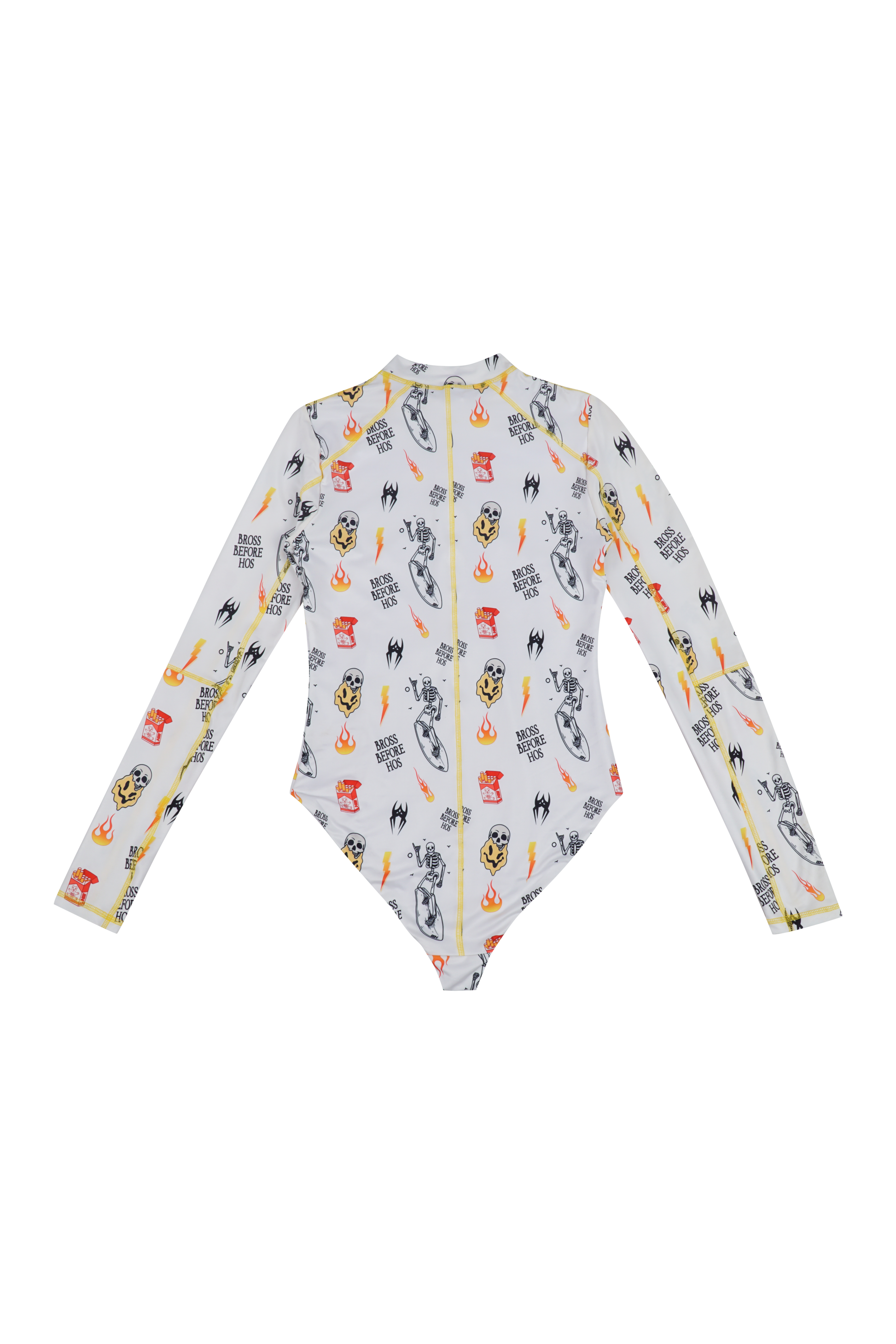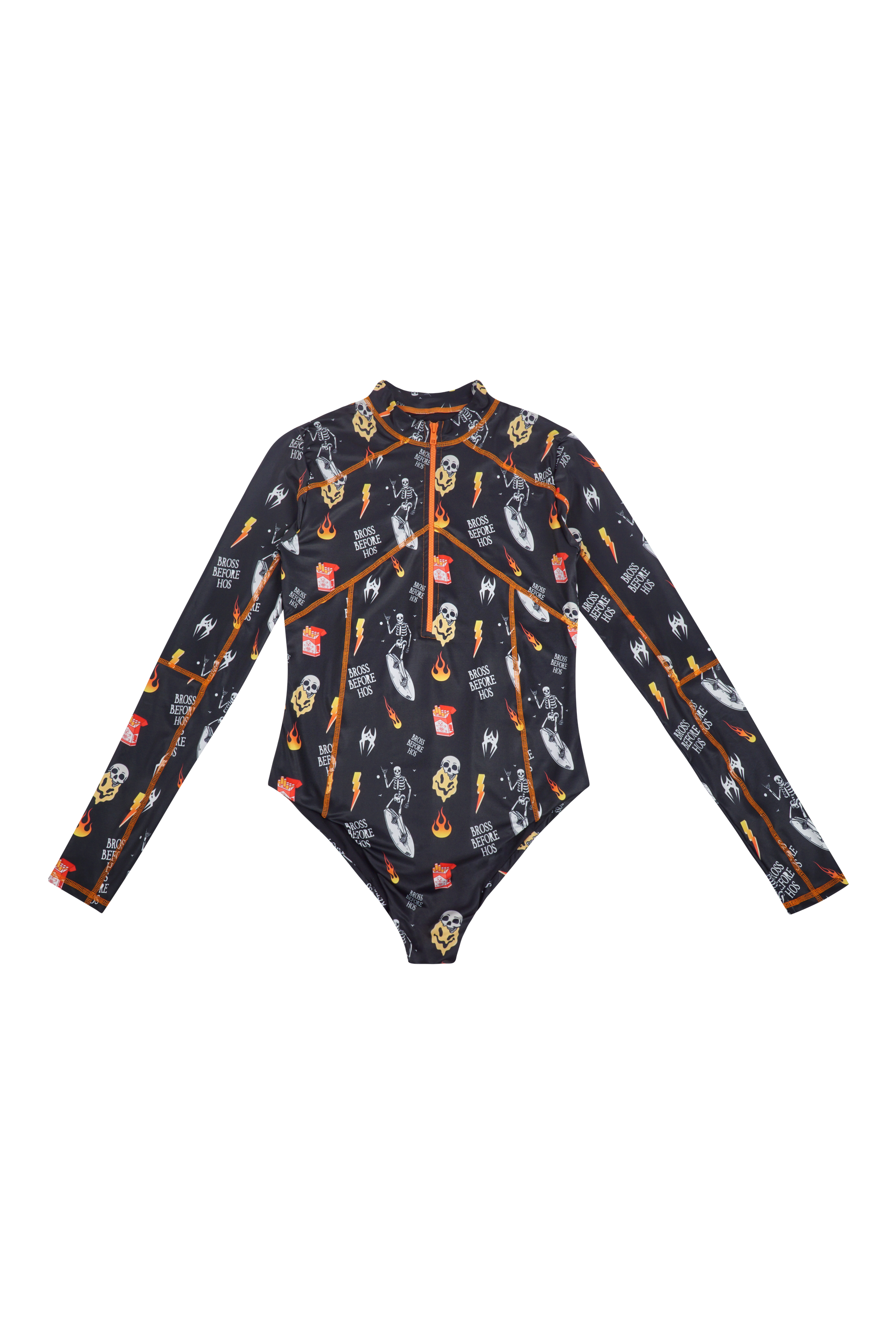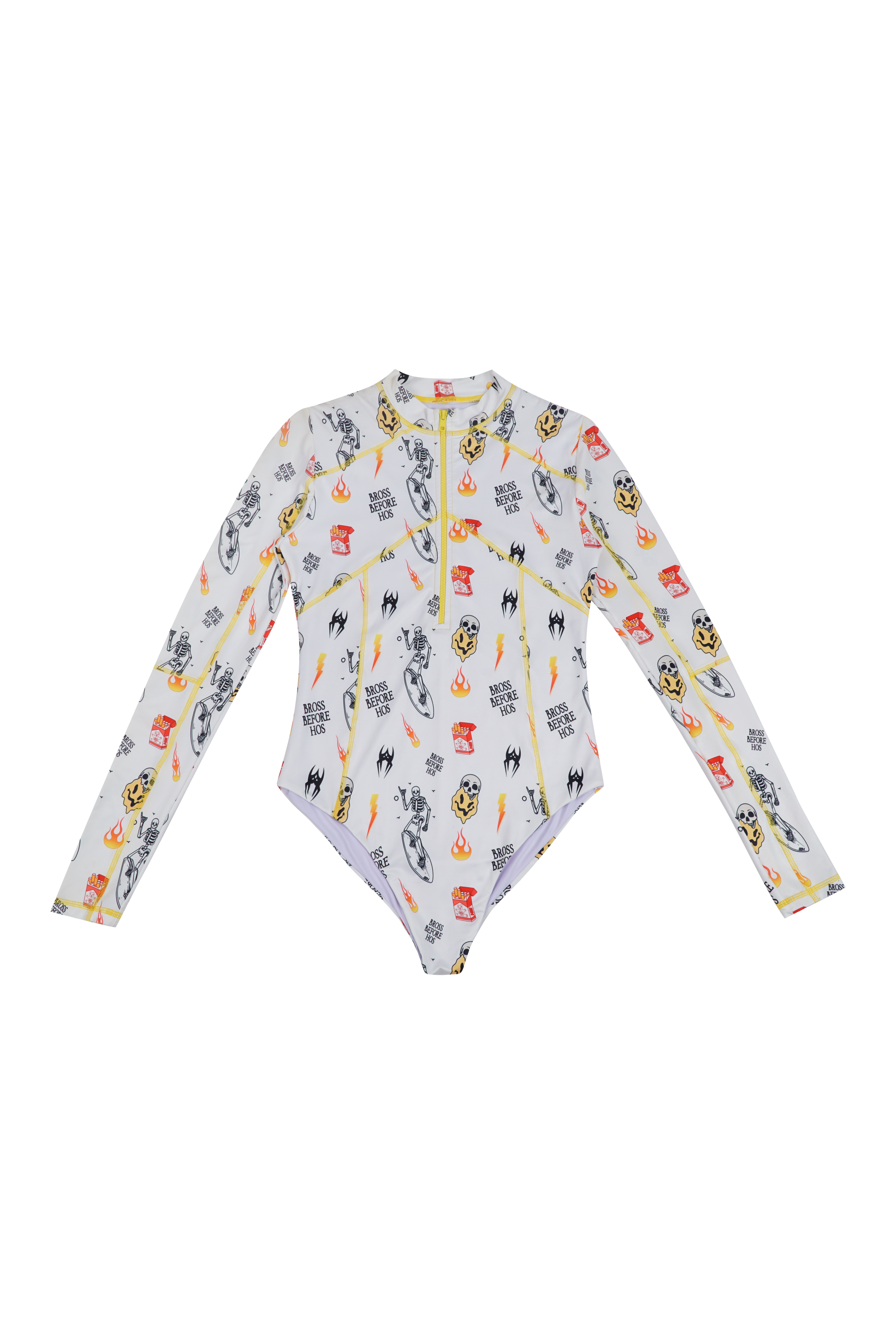This swimsuit with a signature print is perfect for beach days, surfing, or everyday wear.
